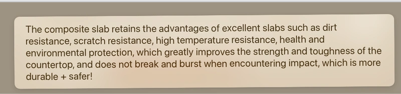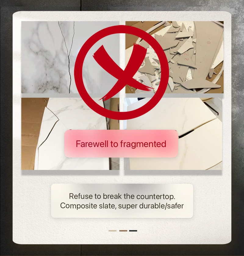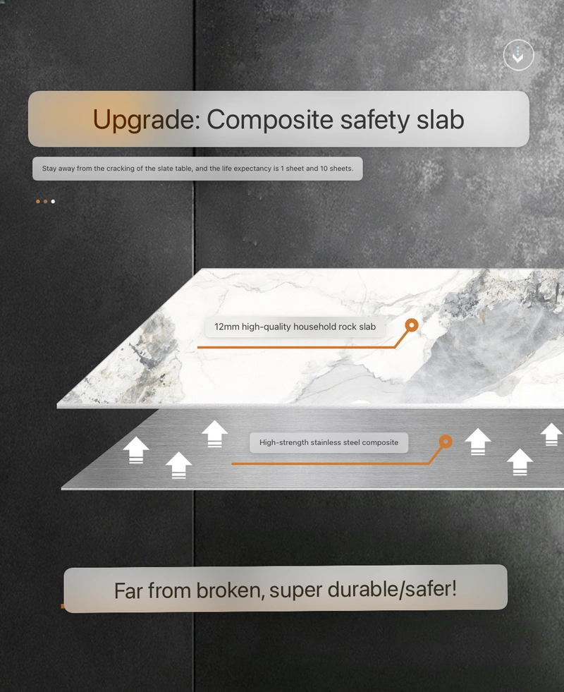 3、The 12mm metal composite sintered stone tabletop is extremely durable: it is impact-resistant, scratch-proof, and not easy to break, eliminating the problem of fragmentation. Its durability and safety are far superior to those of products in the same category.