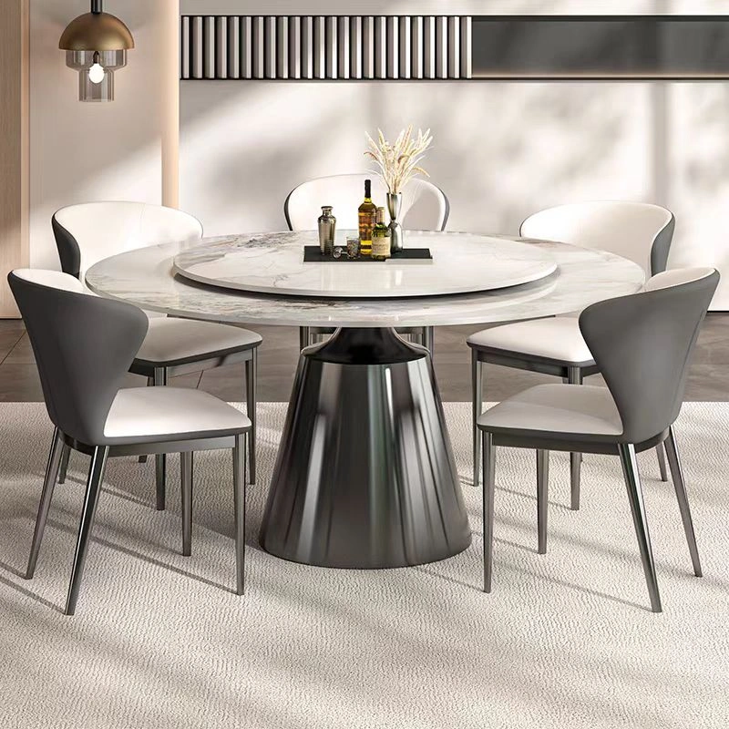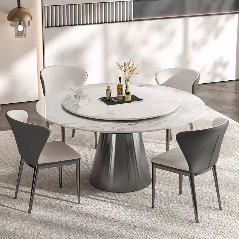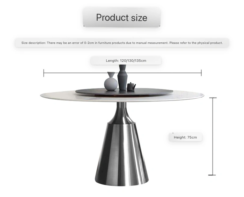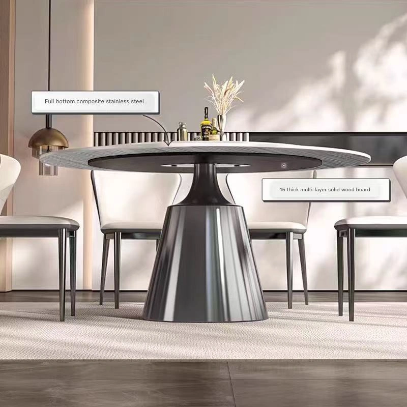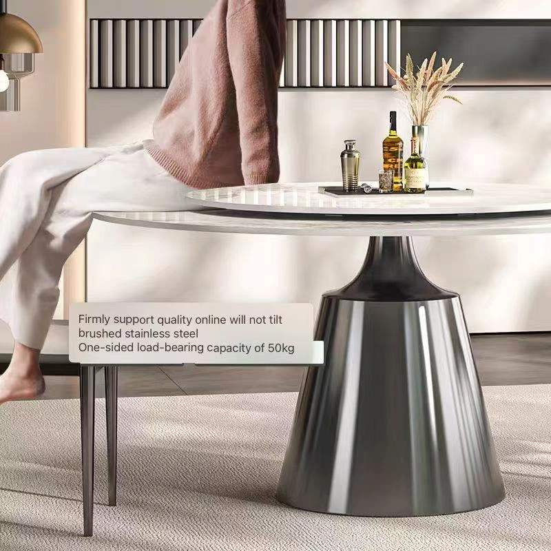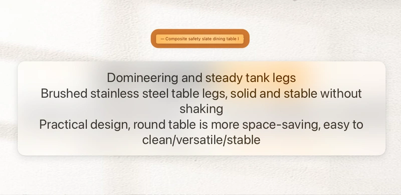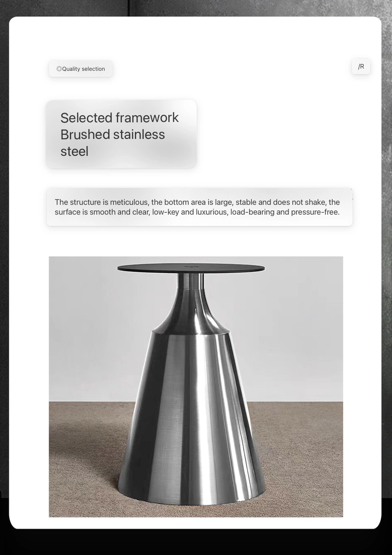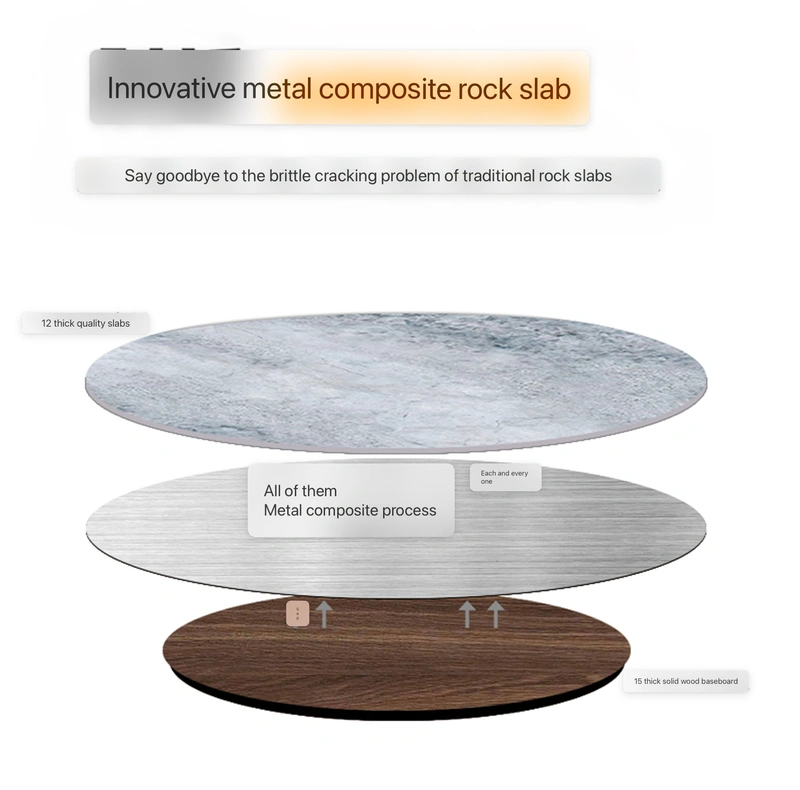 Brushed stainless steel base, textured and rust-proof; super-strong composite tabletop (12mm metal composite sintered stone + solid wood half-support).